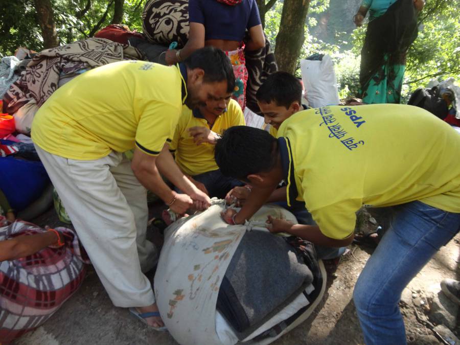 Bachendri Pal, the first Indian Women to Climb Mount Everest, helped the volunteers by accompanying them and guiding them in safely climbing mountains in Uttarkashi while the Sashastra Seema Bal personals helped in Rudraprayag District to cross the revers through ropes with relief material to reach the areas that are inaccessible by roads and waiting for the relief.