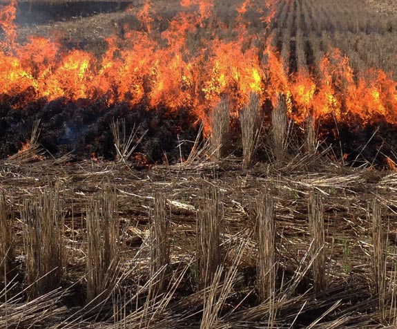 On Oct 30, 2014 when MODIS on NASA's Aqua Satellite passed over Punjab, Punjab was blazing with fire. Red outlines were visible in satellite image indicating active burning sites. Reality is India turns black twice, each year as Indian farmers set their harvested fields on fire to get rid of wheat stubble in the months of April/ May and paddy straw in October/ November. It's not only about the satellite image; these huge fires directly pollute the area across the Northern plain. Studies have found that every year fires blazed in Punjab directly contribute to 20% rise in air pollution in Delhi.